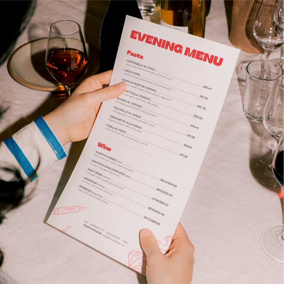 Forchetta is a conceptual brand identity project for an artisanal pasta and wine bar. This design explores restaurant branding through a cohesive illustration system applied across menus, merchandise, and signage. Elegant typography and warm, contemporary visuals bring the Forchetta identity to life, highlighting my focus on illustration, layout, and cohesive brand storytelling.