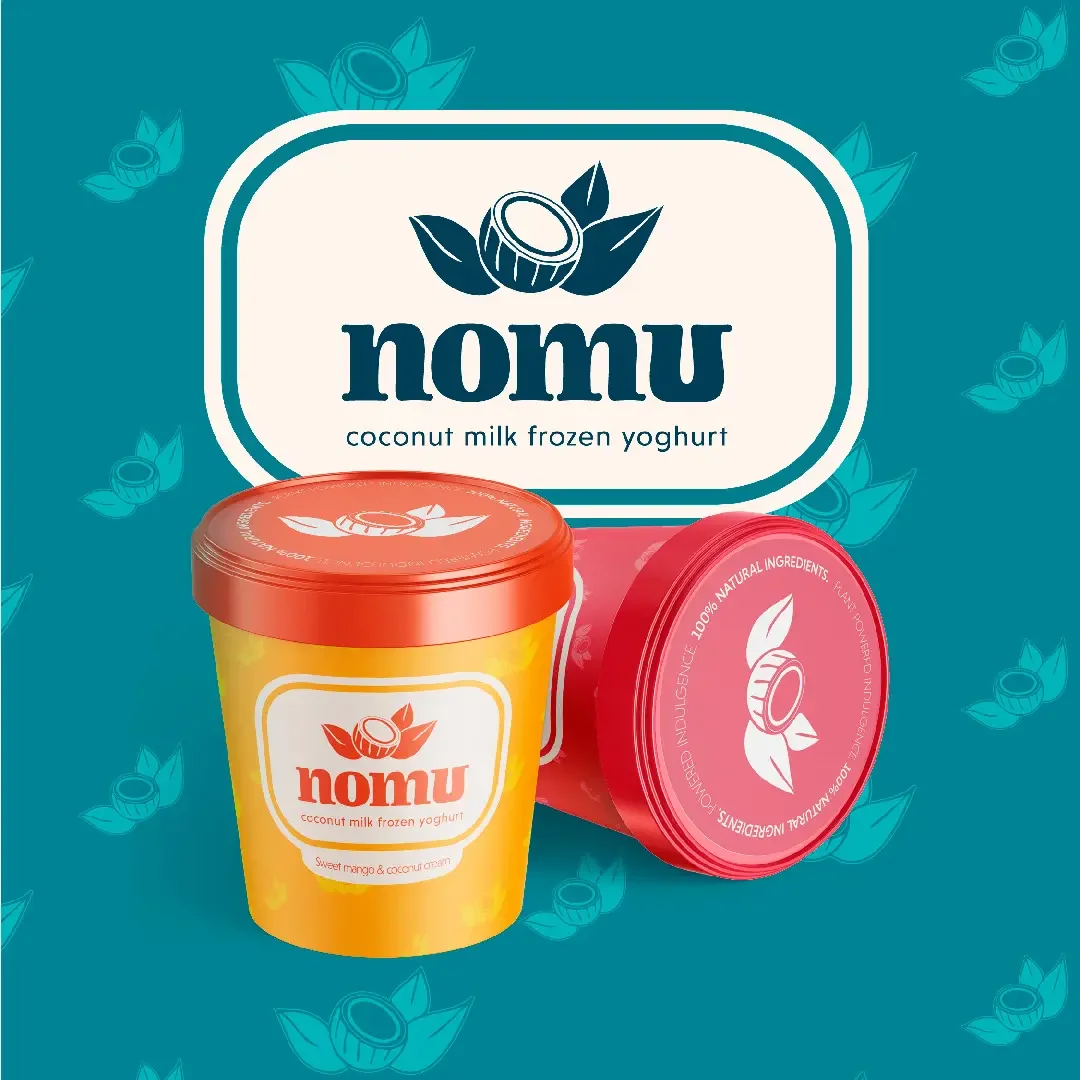Nomu is a coconut milk based frozen yoghurt brand created for a new generation of dessert lovers. Designed to stand out in the growing vegan food market, the brand identity is bold and joyful.